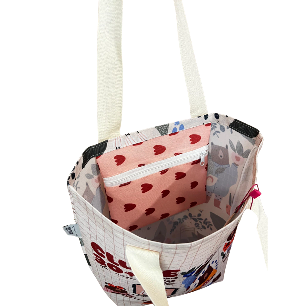 Com estampa super alegre e colorida, essa bolsa com tecido impermeável é a combinação perfeita de praticidade e estilo.