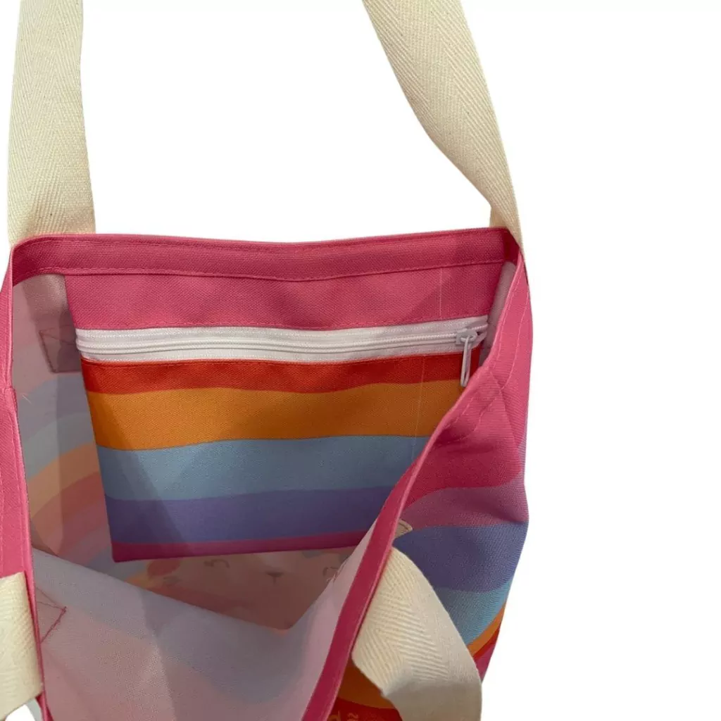 Com estampa super alegre e colorida, essa bolsa com tecido impermeável é a combinação perfeita de praticidade e estilo.