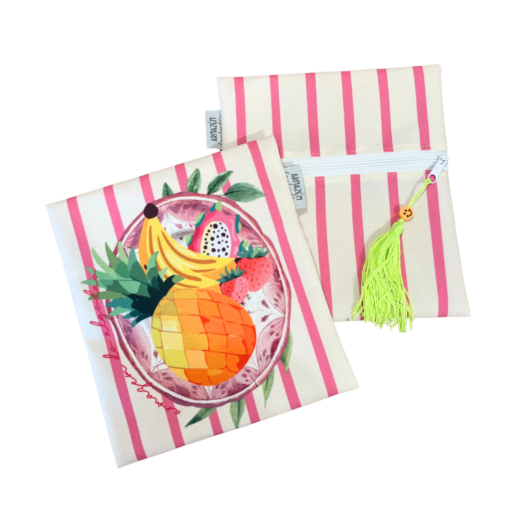 Nécessaire pequena que cabe muita coisa! Confeccionada em tecido impermeável, estampa frente e verso.