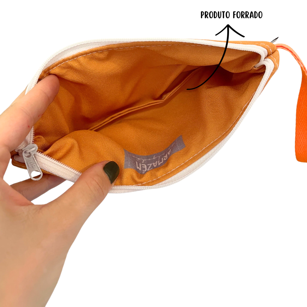 A nécessaire reta P é o produto perfeito pra levar celular, documentos e dinheiro por aí. A alcinha permite que você carregue ela no pulso, garantindo maior segurança aos seus pertences na hora de carregá-los.