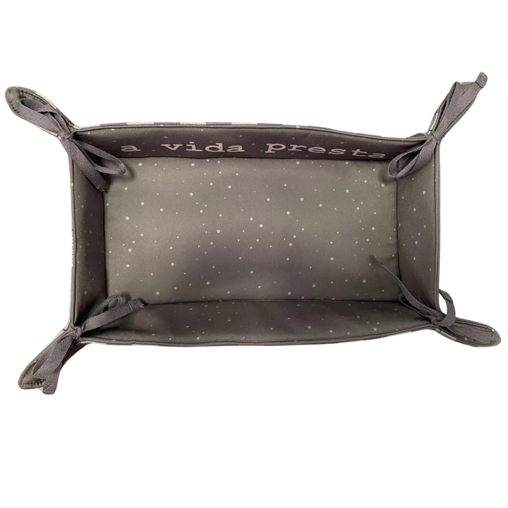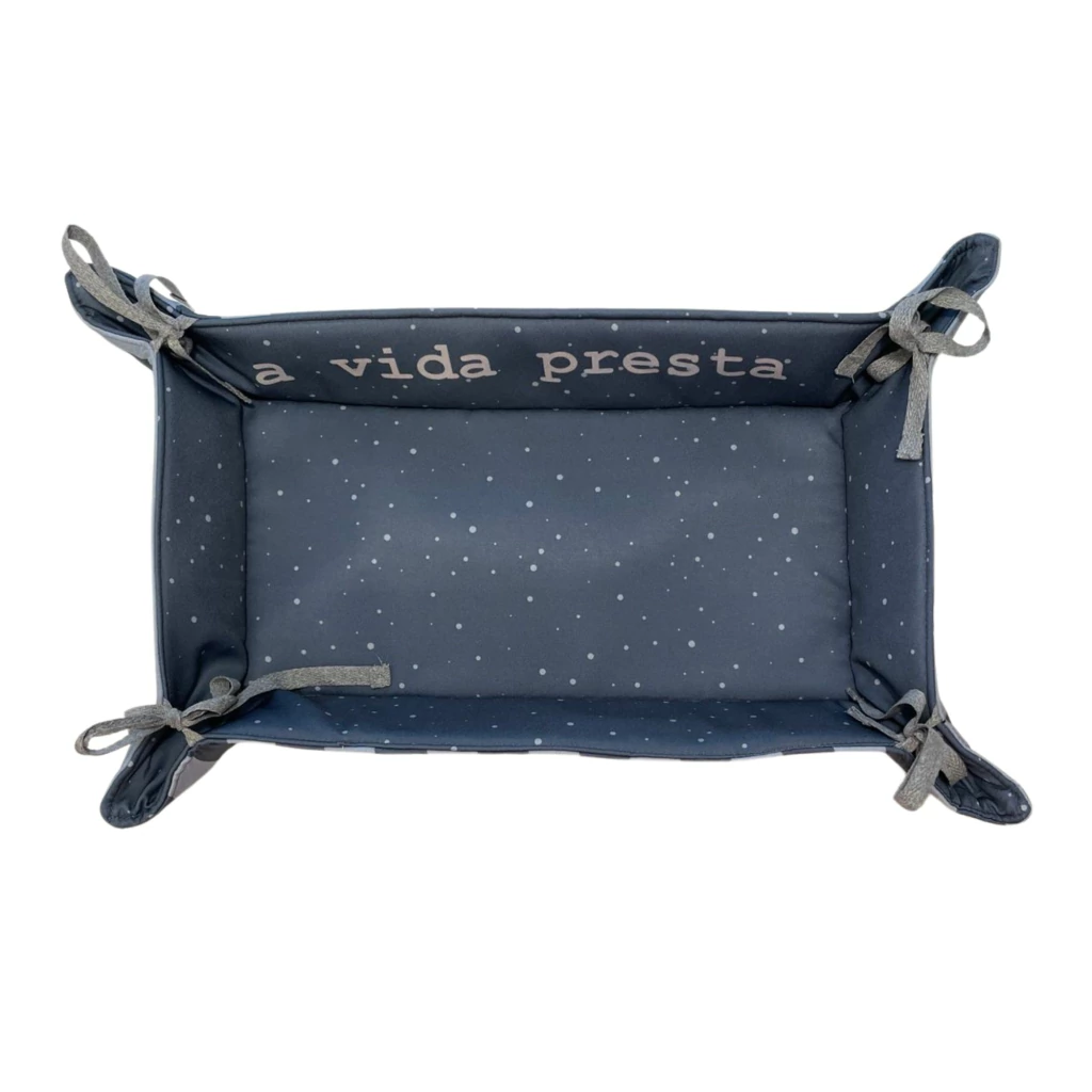 O panier é uma cesta para pães, perfeito para servir e deixar sua mesa ainda mais linda! Feito em tecido poliéster com estrutura em manta acrílica, com amarrações laterais, utilização dupla face.