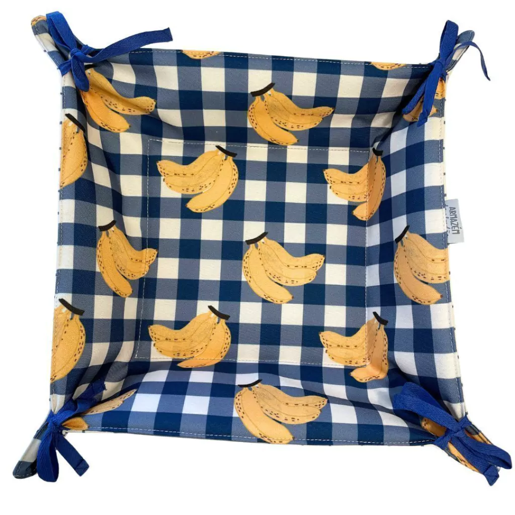 O panier é uma cesta para pães, perfeito para servir e deixar sua mesa ainda mais linda! Feito em tecido poliéster com estrutura em manta acrílica, com amarrações laterais, utilização dupla face.