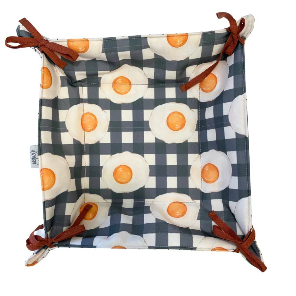O panier é uma cesta para pães, perfeito para servir e deixar sua mesa ainda mais linda! Feito em tecido poliéster com estrutura em manta acrílica, com amarrações laterais, utilização dupla face.